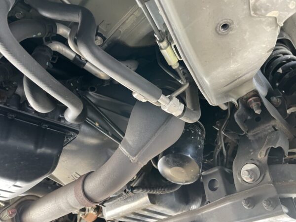 エンジンルーム内(上側)または、車の下側(エンジンの下部)に設置されています。エンジンの上部や横に取り付けられている場合はボンネットを開ければ見えることが多いですが、エンジン下部の場合は車をジャッキアップしないと見えないことが多いです。